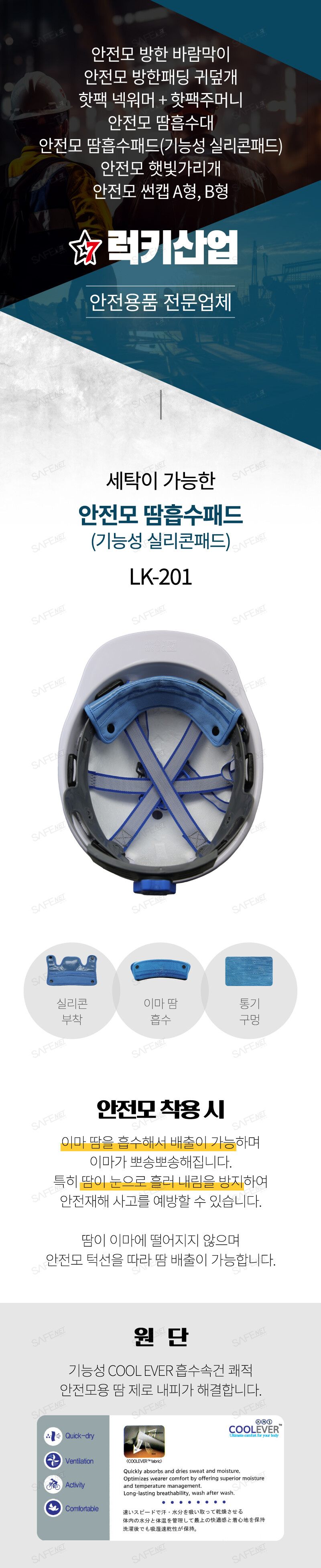 안전모 땀흡수패드(기능성 실리콘패드) LK-201