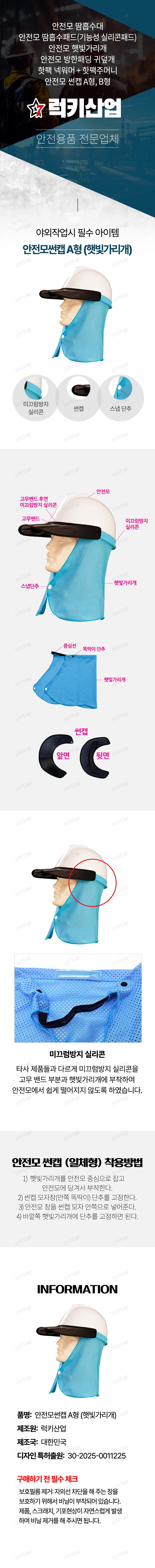 - 안전모에 썬캡 및 햇빛가리개 부착