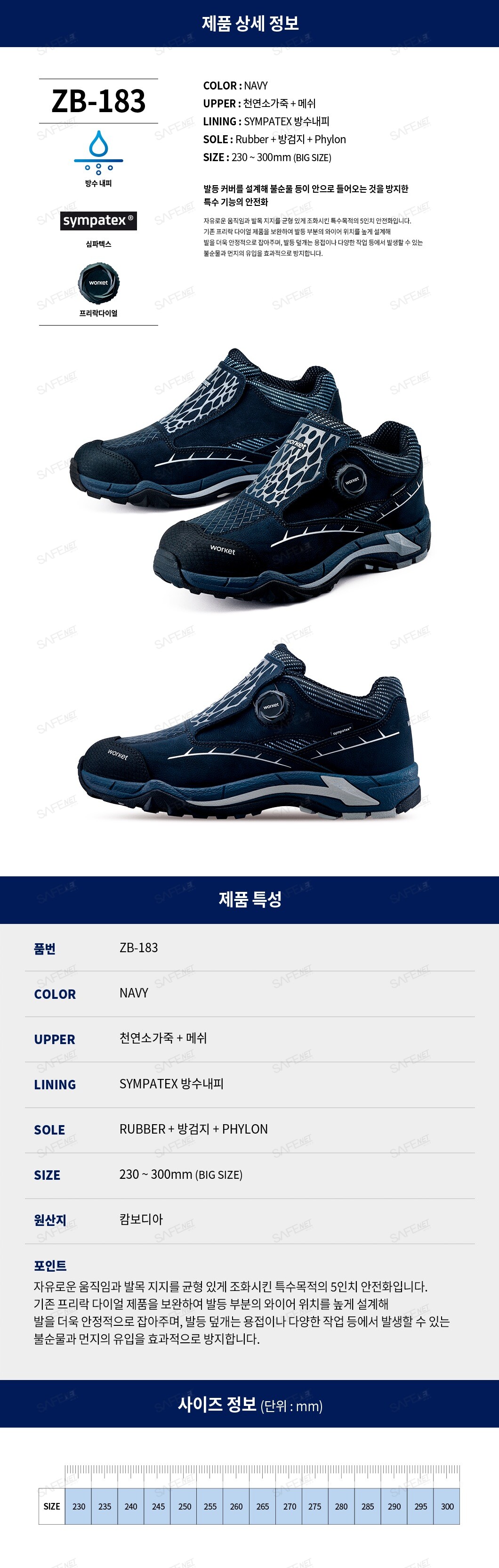 규격 4인치 / 다이얼타입 / 심파텍스 방수내피 / 발등커버 / 방검지솔 / 230~300mm