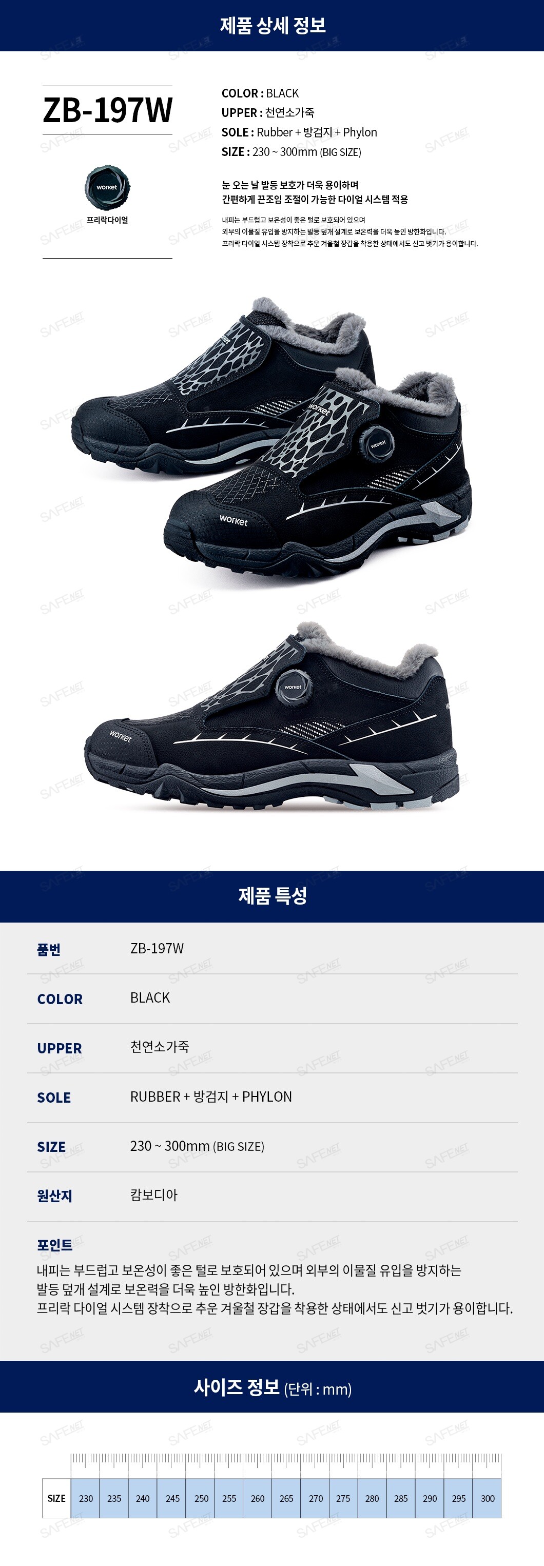 워킷 안전화 ZB-197W (방한화/다이얼)