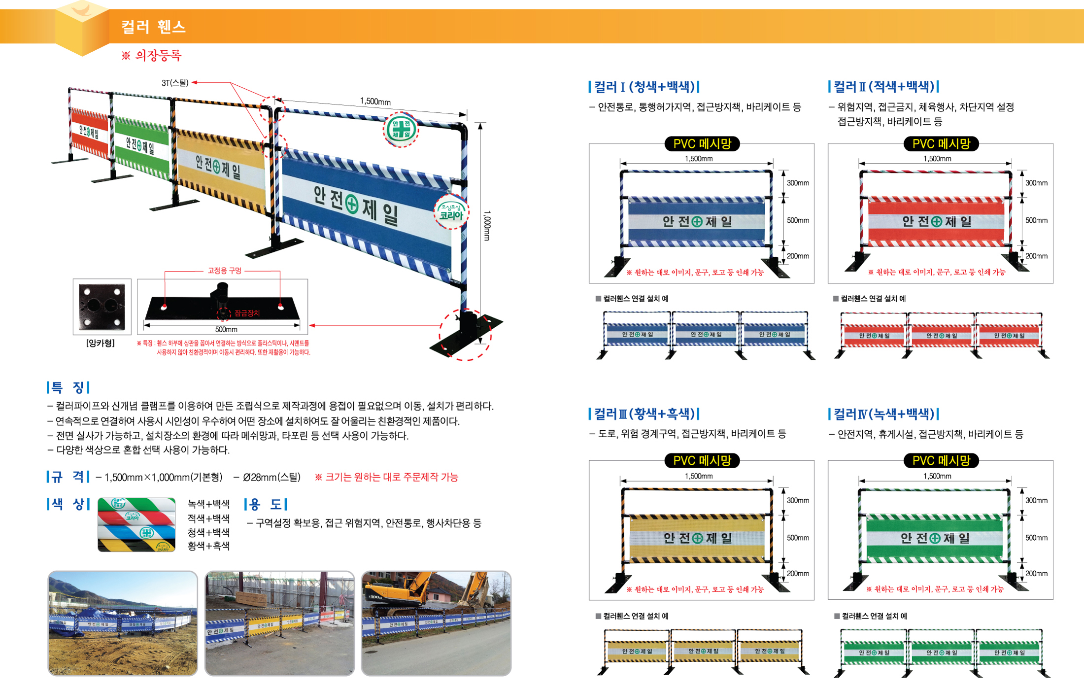 칼라안전휀스,칼라안전파이프,바리케이트,멀티홀더,차단봉