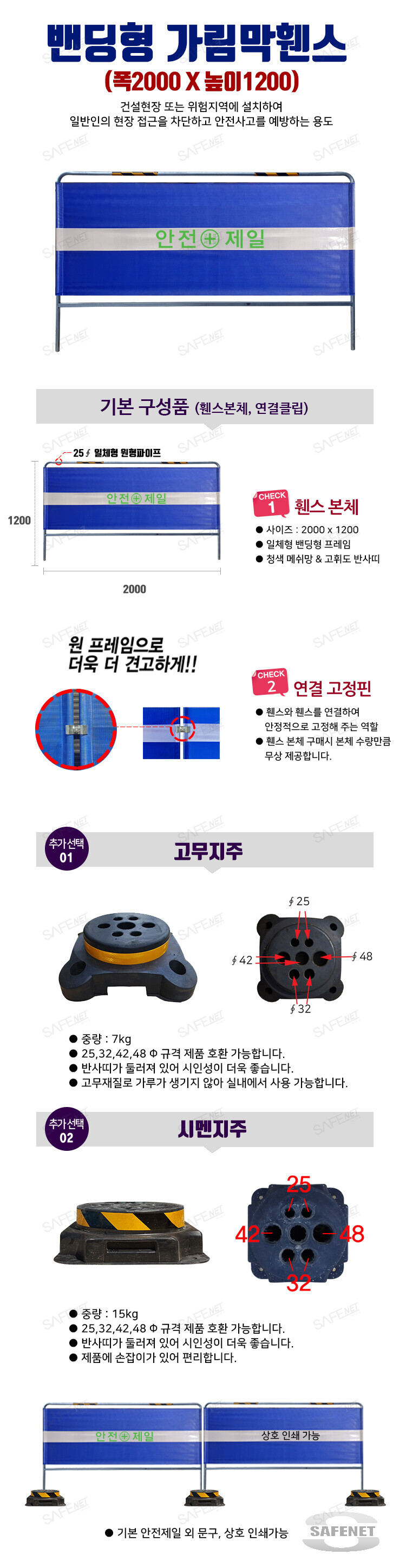 규격 H1200 x W2000mm / 1단 / 청색메쉬망 / 반사지 / 상호인쇄가능