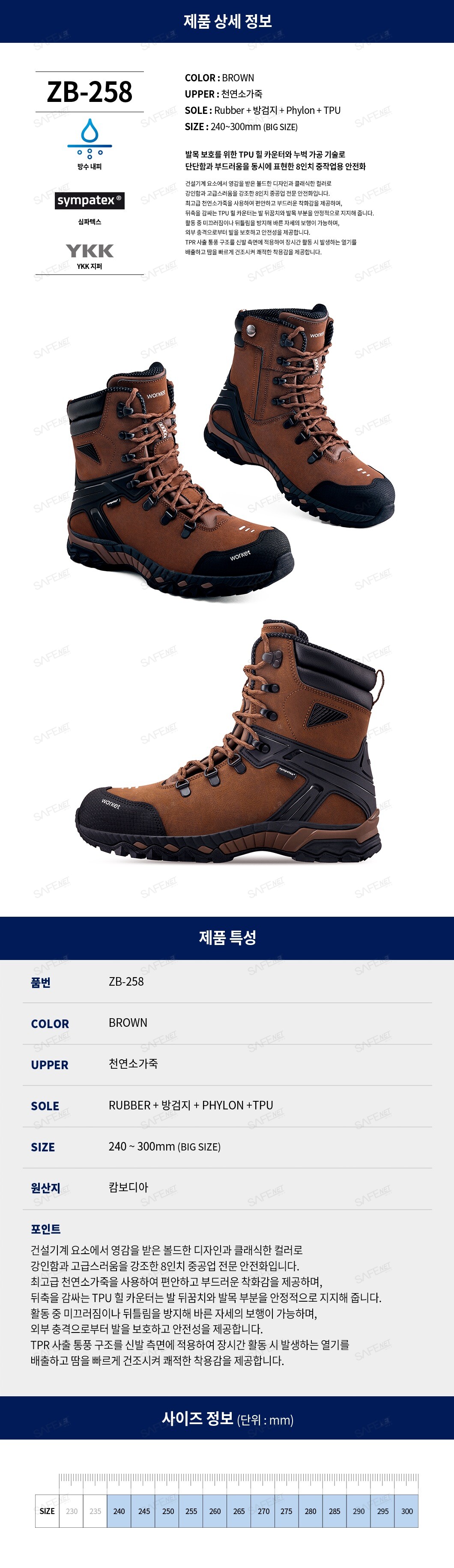 워킷 안전화 ZB-258 (8인치 중공업용)