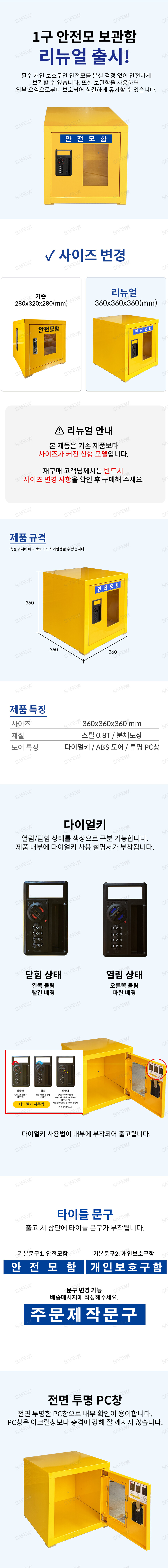 규격 360 * 360 * 360 / 다이얼키 / 투명 PC창 / 스틸 0.8T