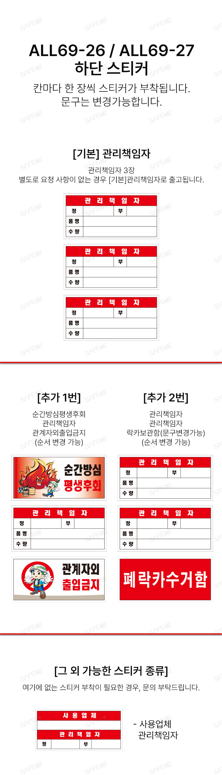 • 거래와 관련된 모든 내용은 구매자와 공급업체간 협의를 통해 정해야 하며, 세이프넷은 거래내용에 대한 어떠한 책임도 지지 않습니다.