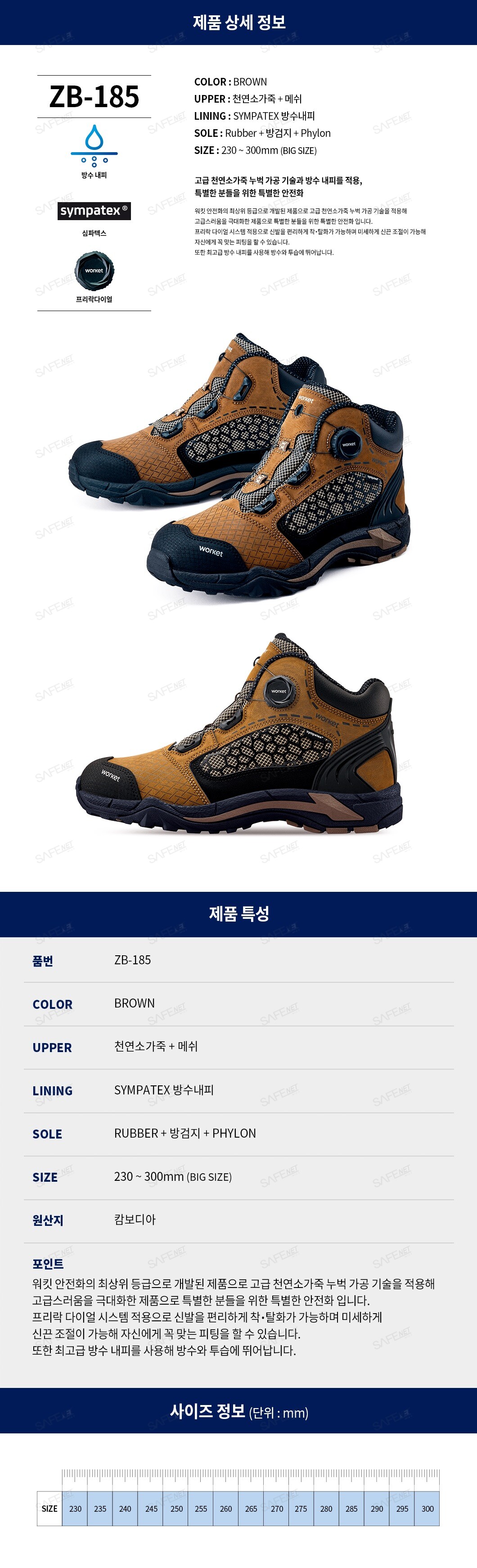 규격 6인치 / 다이얼타입 / 천연소가죽누벅 / 심파텍스 방수내피 / 방검지솔 / 230~300mm