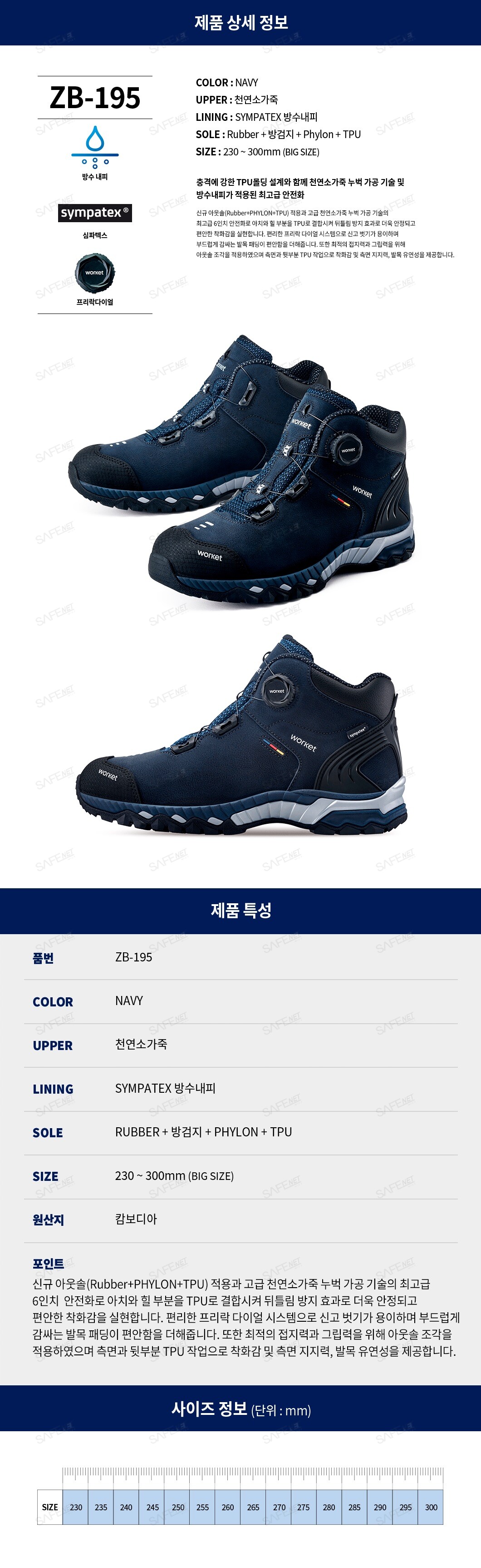 규격 6인치 / 다이얼타입 / 천연소가죽누벅 / 심파텍스 방수내피 / 방검지솔 / 230~300mm