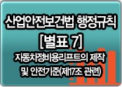 [별표 7] 자동차정비용리프트의 제작 및 안전기준(제17조 관련) 번호구분내용1재료자동차정비용 리프트에 사용되는 재료의 기계적 성질과 강도는 설계․사용조건에 적합해야 한다.2조작장치가. 리프트장치